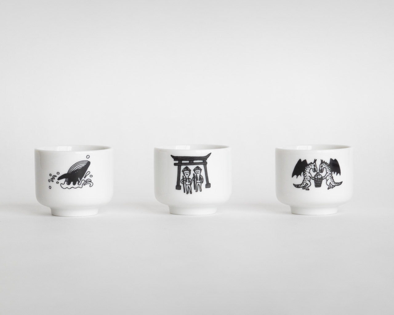 土佐市をイメージした、かわいいオリジナルイラストをあしらったお猪口。人気アクティビティのホエールウォッチングから「くじら」、四国遍路の35番札所清瀧寺、36番札所青龍寺にちなんで「おへんろさん」、土佐市のシルエットが龍の形をしているのと、文旦発祥の地であることから、「ドラゴン」が文旦を抱えています。